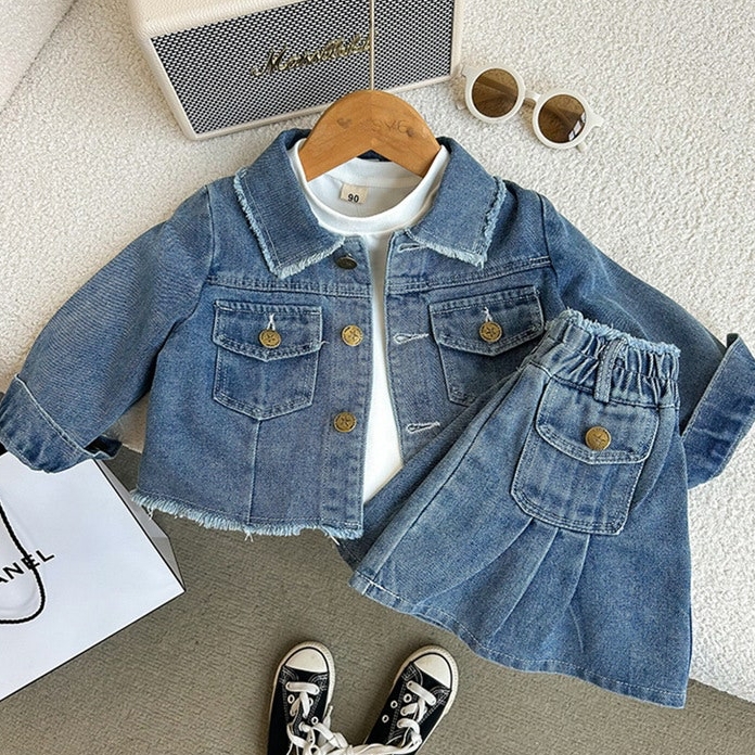 - [수입] 포켓데님자켓치마세트 (바로배송)