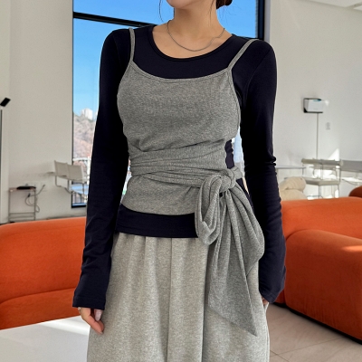 - on.[CD611]리본스트링브이넥가디건